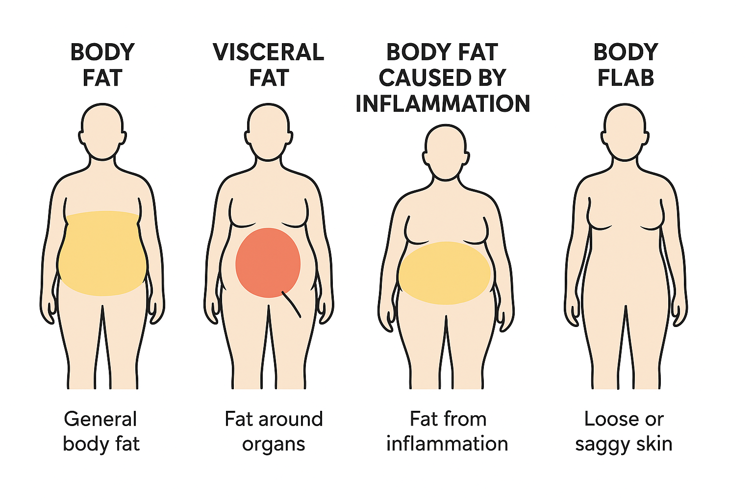 So … what you have may not be fat. It may be inflammation. If you are a muscular, trim person but you still have a double-chin and a goat-belly, it could be inflammation, not fat. There are three general types of “fat” which again, may not be fat at all: